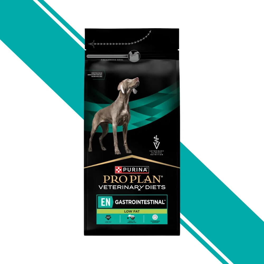 Purina Pro Plan Veterinary Diets EN Gastrointestinal Low Fat is a complete dietetic feed for puppies and adult dogs formulated for the reduction of acute intestinal absorptive disorders and compensation for maldigestion. This specialist formula features a reduced fat content combined with highly digestible ingredients to support digestive recovery. Contains prebiotic fibres to support beneficial gut bacteria. Suitable for both puppies and adult dogs with acute or chronic gastrointestinal conditions requiring fat restriction. Veterinary recommendation required before use.
