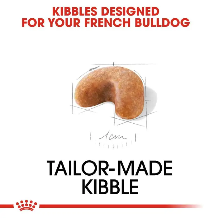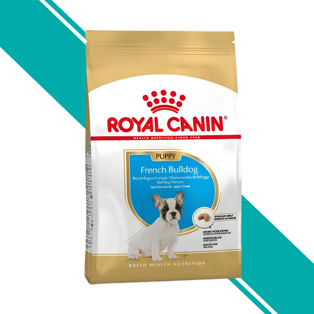 Complete dry food specifically formulated for French Bulldog puppies from 8 weeks to 12 months, designed to support immune health, digestive function, skin barrier integrity, and adapted for brachycephalic jaw structure.
