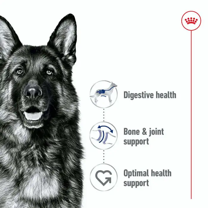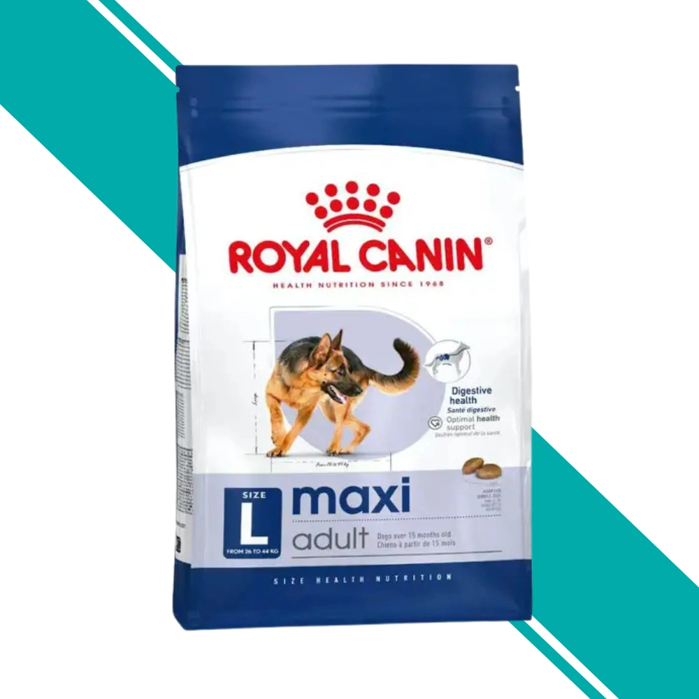 Royal Canin Maxi Adult is a complete feed formulated for adult large breed dogs weighing between 26-44kg from 15 months old. Features highly digestible proteins and a balanced supply of fibres developed to support good digestive health, as larger dogs have extended digestive transit times and may be more susceptible to sensitivities. Contains a combination of minerals and nutrients including glucosamine and chondroitin designed to support healthy bones and joints, which bear the majority of body weight in large dogs. Enriched with omega-3 fatty acids (EPA/DHA: 4g/kg) to help maintain healthy skin. The kibble size and shape are adapted to fit the large dog's jaw.