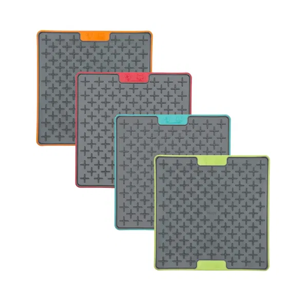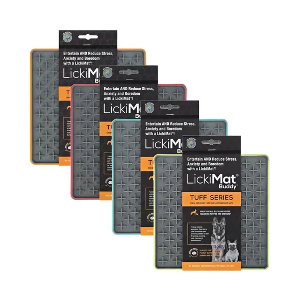 For fun pet interaction, three designs are available. Lickimat Buddy, with its cross maze design, is perfect for thick sticky treats like doggy peanut butter, wet food or soggy biscuits.