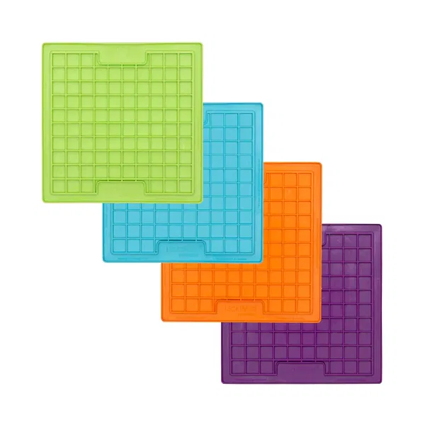 For fun pet interaction, three designs are available. Lickimat Playdate, with its box design, is perfect for mushy bits of meat or fish, yogurt, peanut butter and chunky treats and foods.