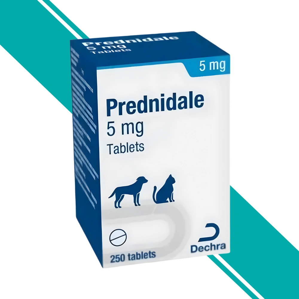 Prednidale 5 mg Tablets for Dogs and Cats Prednidale 5 mg Tablets is a prescription oral corticosteroid for dogs and cats, containing prednisolone 5 mg per tablet. Prednisolone is a synthetic glucocorticoid with anti-inflammatory and immunosuppressant properties and only slight mineralocorticoid activity. Administered orally once daily, it is indicated for the treatment of inflammatory and allergic diseases, including some autoimmune diseases and some neoplastic conditions. The 5 mg tablet strength allows accurate weight-based dosing across both species. The tablets are divisible. This product is a POM-V medicine and requires a valid veterinary prescription.